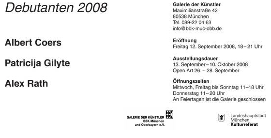 Ausstellung ''Debutanten 2008'' in der Galerie der Künstler bis 10. Oktober 2008