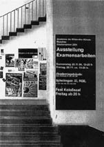 Was bleibt von 6 bis 14 Semestern Studium an der Kunstakademie?Davon kann man sich am Donnerstag, 24.11 und Fr, 25.11.04 von jeweils ca. 15-20 h ein Bild machen. Als Absolventen sind diesmal u.a. dabei (Ex)Domagker: Paul Huf, Martin Binder, Albert Coers (Doku, Haus 49) Orte: die Akademie der Bildenden Künste München, Akademiestr. 2 (dort im Koloßsaal Albert Coers) und die Anmietung Schellingstr. 33, Rgb. (dort Paul Huf und Martin Binder). Gefeiert wird der Abschluß am Freitag abend im Koloßsaal der Akademie. |